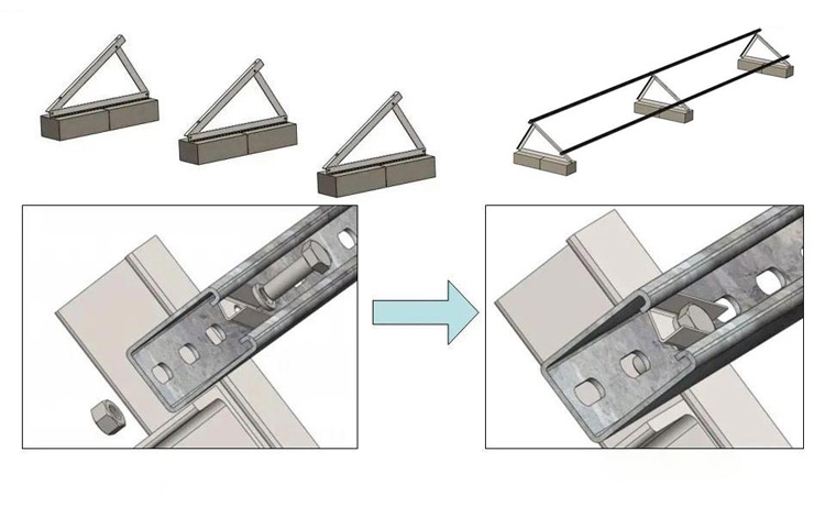 4. Use the hexagonal bolts to connect the angle steel back beam and the angle steel inclined beam and fix them with the angle steel bottom beam.